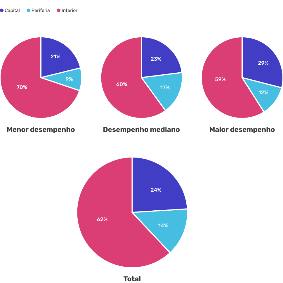Indivíduos com Maior desempenho, Desempenho mediano e Menor desempenho no teste digital por Tipo de município