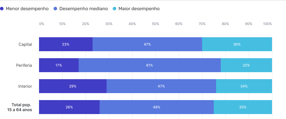 3 Níveis de Alfabetismo por Maior desempenho, Desempenho mediano e Menor desempenho no teste digital