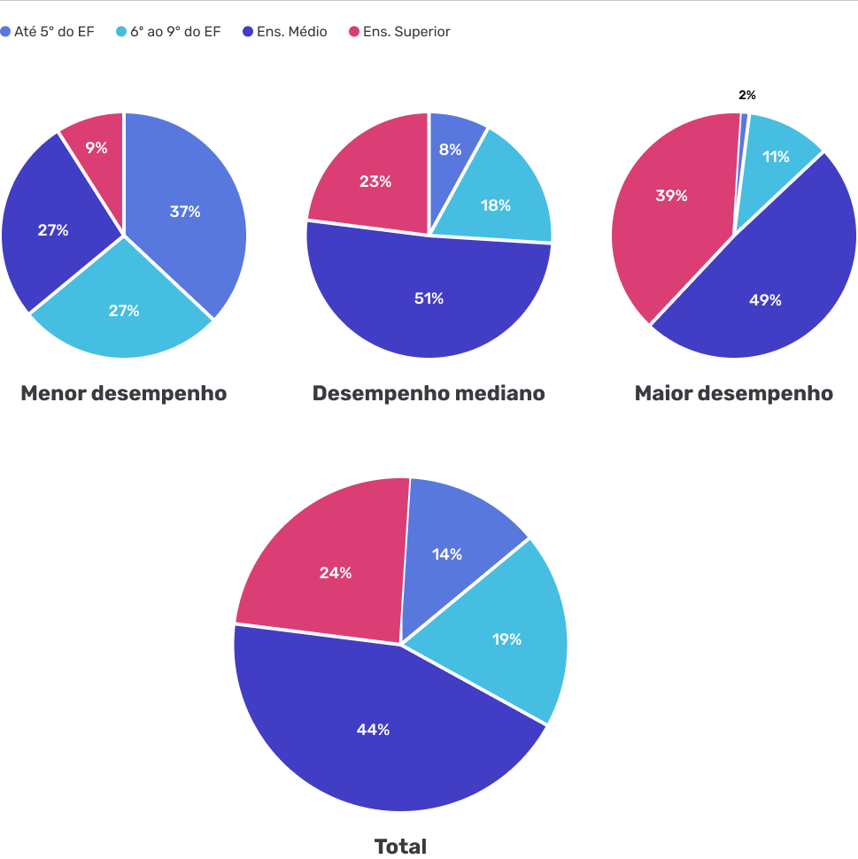 Indivíduos com Maior desempenho, Desempenho mediano e Menor desempenho no teste digital por Escolaridade