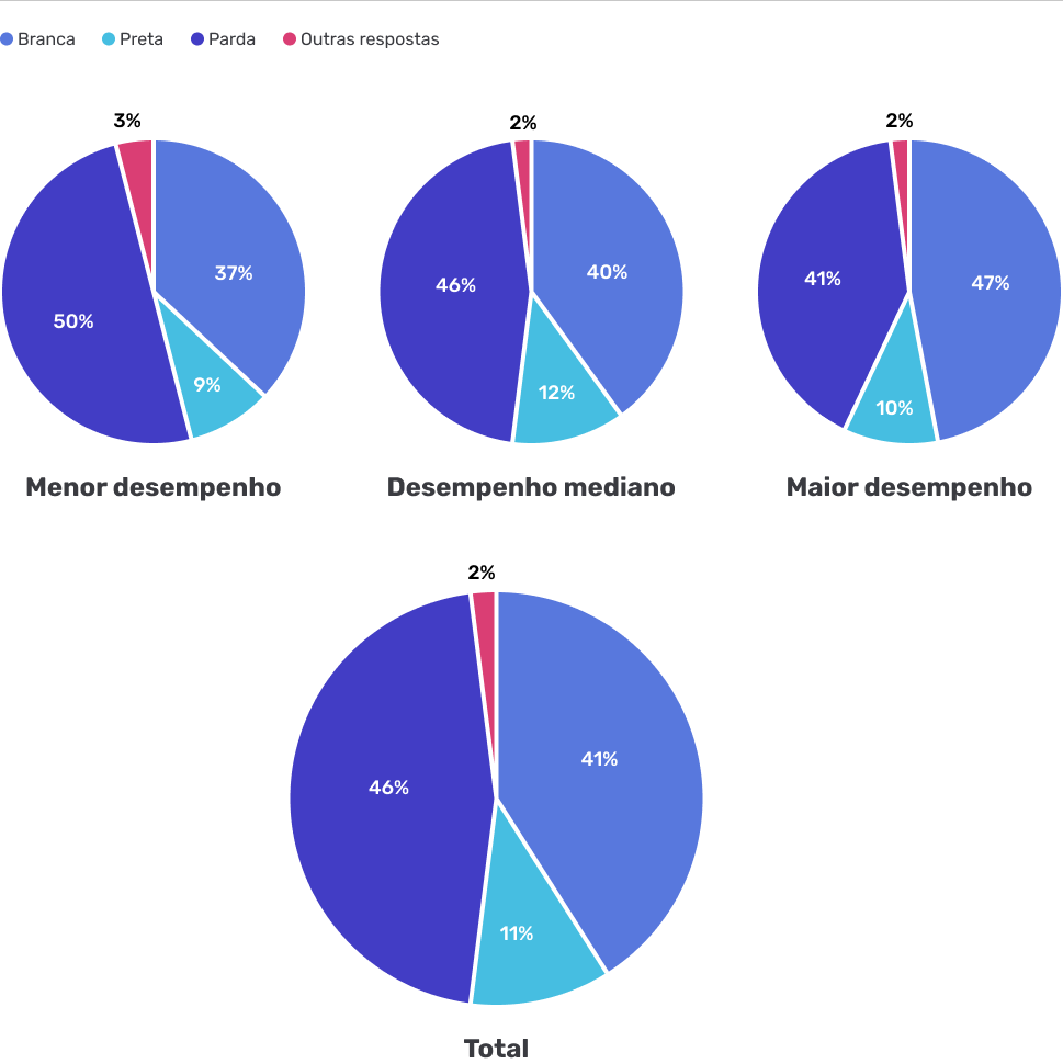 Raça / Cor por Maior desempenho, Desempenho mediano e Menor desempenho no teste digital