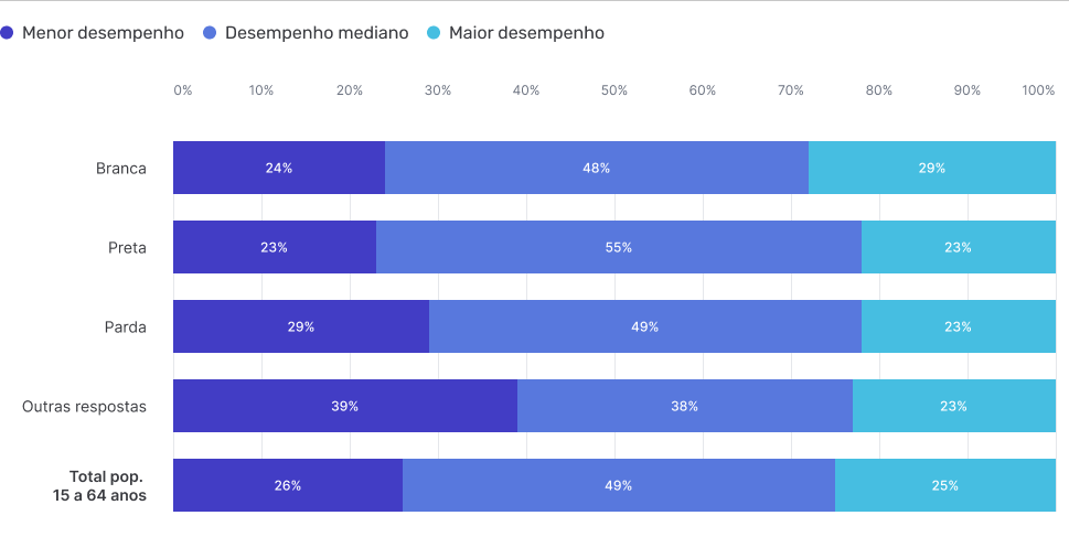 Indivíduos com Maior desempenho, Desempenho mediano e Menor desempenho no teste digital por Raça / Cor