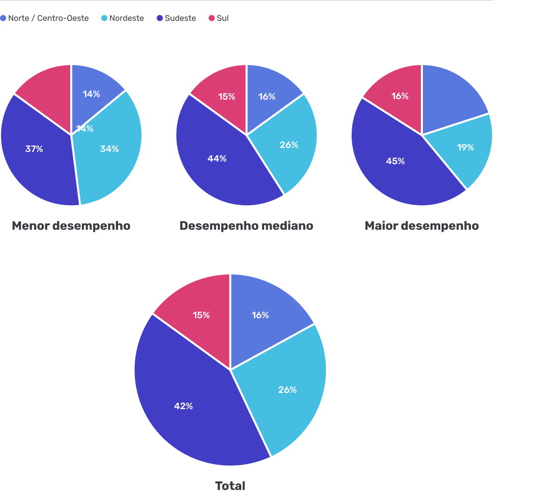 Regiões do país por Maior desempenho, Desempenho mediano e Menor desempenho no teste digital