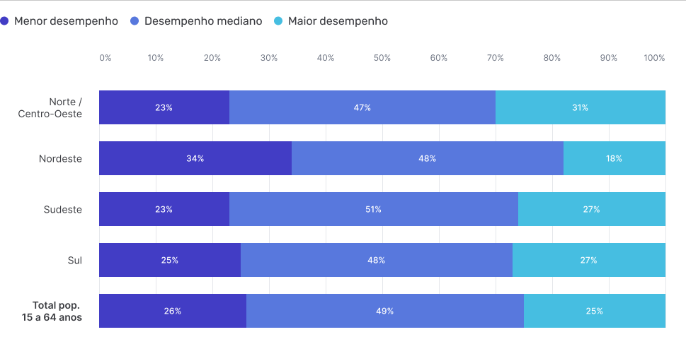 Indivíduos com Maior desempenho, Desempenho mediano e Menor desempenho no teste digital por Regiões do país