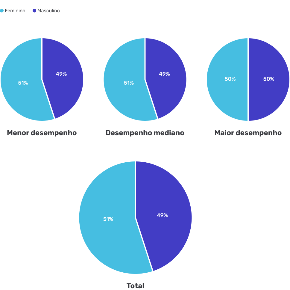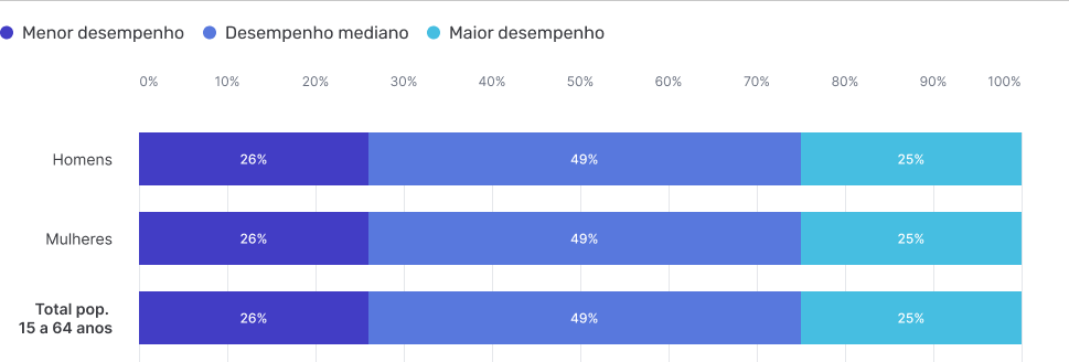 Homens e Mulheres por Maior desempenho, Desempenho mediano e Menor desempenho no teste digital