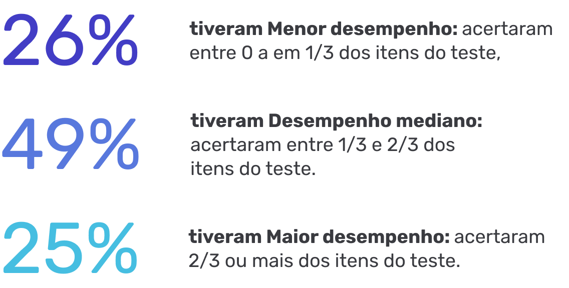 Para um primeiro esforço de análise, calculou-se a proporção de acertos nos itens que compunham o teste digital, criando 3 grupos de desempenho:
